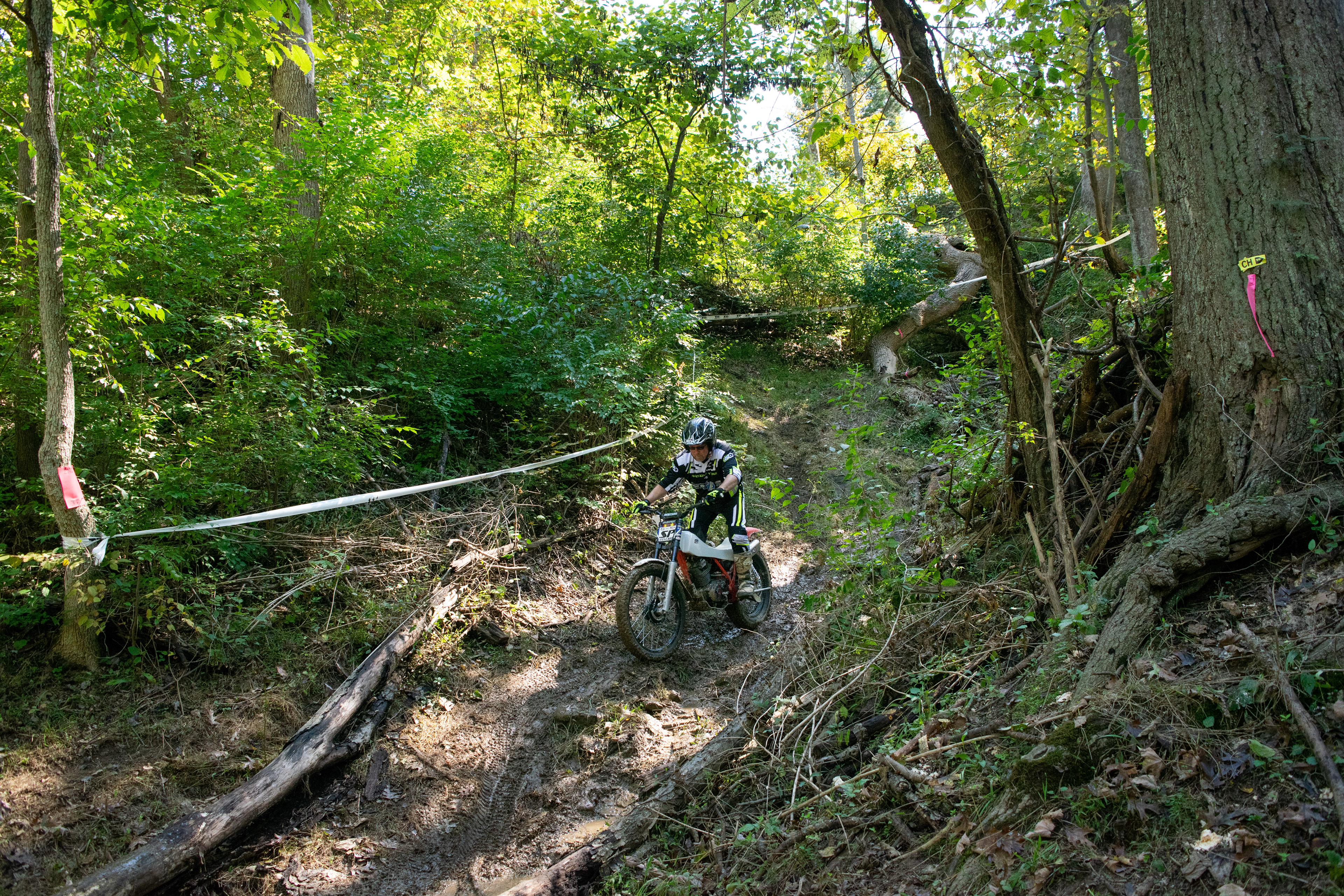 Saddleback gives riders a varied trials experience. Leading riders through a beautiful forest on a rather low-difficulty trail, riders compete in a section formed from the foundation of an old barn, several off-camber/hill sections, creek sections, and several stadium sections that are a stones-throw away from the pits. Taking first place on Saturday, and seventh place on Sunday, Kentucky-based Sportsman rider Zachary Poulton currently stands in second place for the season championship. Having two event wins over Zachary, Donald Buckley secured the top podium for the Sportsman championship before advancing to the Advanced class for the last event of the season. Securing third place in the Sportsman class is Ohio rider Richard Calendine.